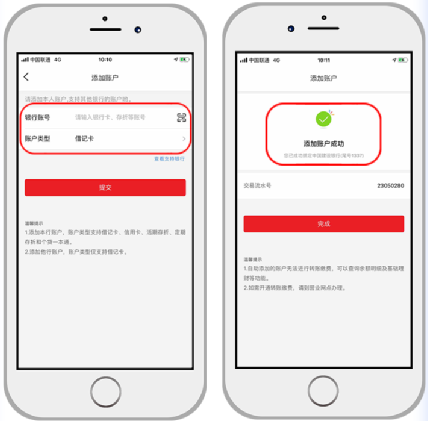 第三步:点击添加账户—输入本人名下他行银行卡信息—进行人脸识别通过后绑定成功。