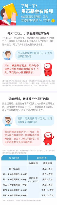 3.赎回快:1万元以内赎回实时到账,1万元以上赎回T+1日到账
