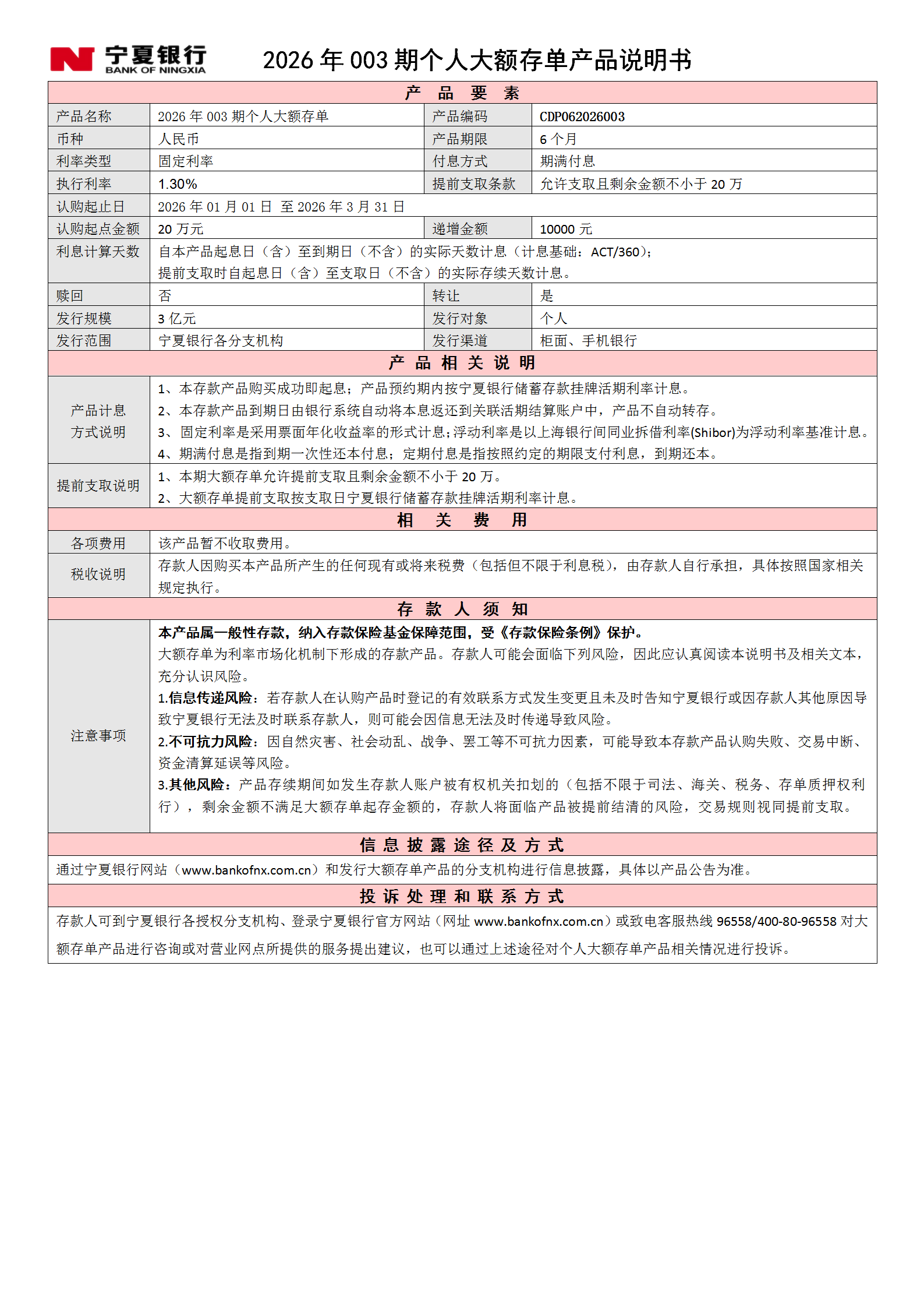 2026年第003期个人大额存单